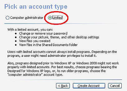 כמעט תמיד התשובה היא שהמערכת מנסה למנוע ממך לגרום נזקים. רוב (אבל לא כל) ההתקנות האוטומטיות של וירוסים, סוסים טרויאניים ו-Root Kits ייכשלו בגלל שהן דורשות משתמש בלתי מוגבל. אם אתם משוטטים באינטרנט או קוראים דואר אלקטרוני תחת משתמש מוגבל, ופתאום אתם מקבלים הודעה מהמערכת שמשהו לא הצליח להפעיל את עצמו, רוב הסיכויים שברגע זה הצלחתם למנוע חדירה של רוגלה או וירוס למחשב.