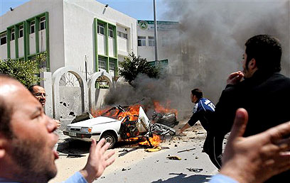 הסובארו הלבנה של אל-קוקה עולה באש (צילום: איי.פי)
