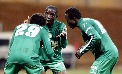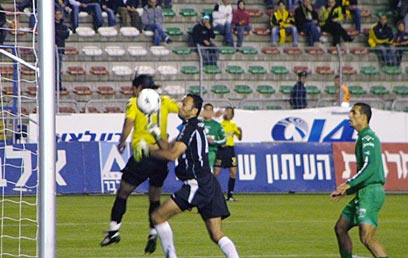 המשחק המשיך להיות חד צדדי לטובת האורחים. בדקה ה-35 שוב כמעט שער לירוקים, אחרי ששלו מנשה, שקיבל כדור טוב ברחבה, בעט מ-7 מ' אלכסונית מהשער, אבל קורנפיין הציל עם הרגל לקרן.
