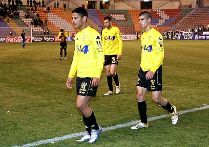 יצחקי, ברוכיאן ובן שושן יורדים מאוכזבים, אתמול (צילום: ראובן שוורץ)