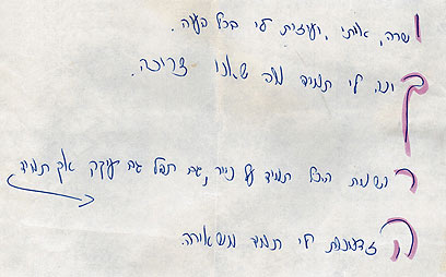 כתב שאינו אופייני לגיל. כתב ידה של אורית