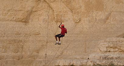 מהמצוק גלשנו בסנפליג מגובה של 20 מטר בערך, וההתרגשות היתה רבה. רוב הנערים משתתפים בפעילות כזו בפעם הראשונה בחייהם. בחודשים האחרונים הם התנסו בתרגולות רבות בחורשה שלנו בנתניה, אולם המצוק הוא הדבר האמיתי. כל מי שהתנסה בסנפינג יודע שהחשש שמרגישים בשעת העמידה על שפת התהום, שכמחוברים לחבל בלבד, היא טבעית. למרות שאכן נראה שרבים מהם חששו, כל הנערים גלשו לבסוף. בנוסף, בנינו בשטח, על המצוק, שתי תחנות טיפוס ותחנת פרוסיקים, שהיא שיטת טיפוס על חבל בצמוד לקיר.