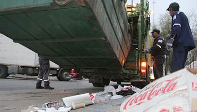 מוצאים "הפתעות" בפחים. עובדי תברואה בי-ם (צילום: דודי ועקנין)