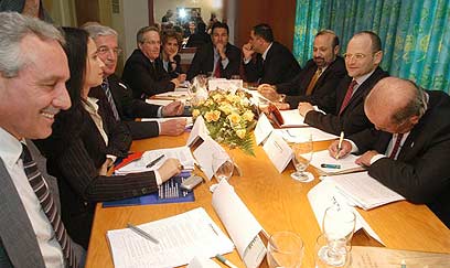 צוותי המו"מ של העבודה וקדימה (צילום: ירון ברנר)
