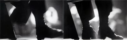 התלבושות המינימליסטיות של רקפת לוי בעבודה הזו הן המדהימות ביותר שלה. כאילו כלום, כולה בד לבן וגרביונים שחורים. כאילו אין בגד. אבל הקונטרסט מדהים. העבודה הזו היא כמו חיידק שמשתולל לי בגוף. כשאני מצלם אותה אני מרגיש שמשהו אוכל אותי מבפנים. התנועות הפתלתלות והחלקלקות זרקו אותי ישר לשם. בתמונה הזו אני מתקרב למחלה. חיפשתי את הגוף המתפתל והזוחל שבו המחלה רצה בתוך העורק. לא רואים עיניים זו רק סילואטה, הכי מופשט, הכי ברור.