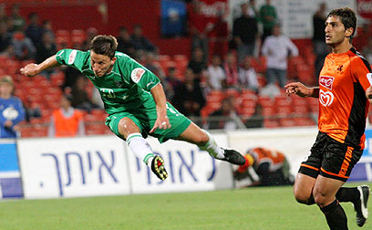 מיכאל זנדברג בורח ליאיר אזולאי, הערב באיצטדיון ר"ג (אלי אלגרט)