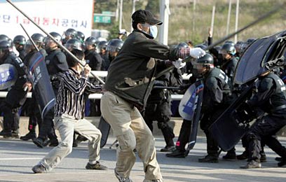 עובדי יונדאי זועמים מפגינים בדרישה להעניש את יו"ר יונדאי מוטורס (צילום: רויטרס)