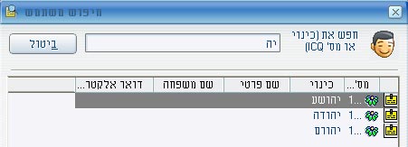 לאחר ששיניתם את כל השמות למה שאתם רוצים, תוכלו למצוא אותם בקלות בתוך הרשימה. לחצו על F3, וייפתח חלון חיפוש. כבר כשתקלידו את האות הראשונה של השם או חלק ממספר ICQ, יוצעו לכם השמות שאתם מחפשים, דומה לחיפוש שם בחלק מהטלפונים הסלולרים.