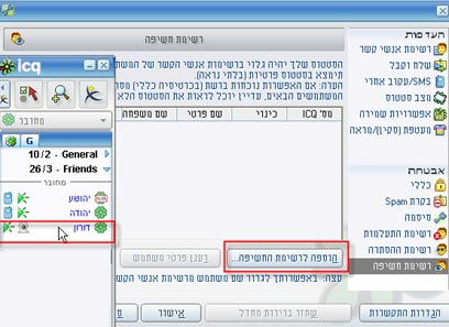 2. בחרו באחת הרשימות (חשיפה, הסתרה או התעלמות), ותתחילו לגרור משתמשים מהרשימה שלכם אל רשימות אלו, או הקליקו על "הוספה לרשימה" והוסיפו משתמש על ידי חיפוש פרטיו במדריך של ICQ.