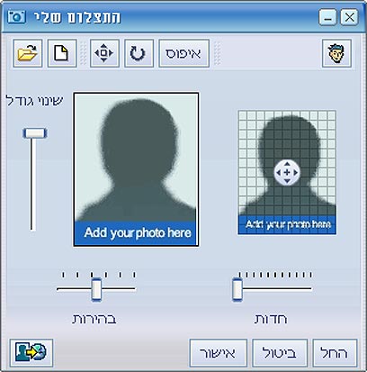 3. ייפתח חלון חדש, בו תוכלו לפתוח תמונה ששמרתם במחשב, לערוך את הגודל שלה ולשמור.