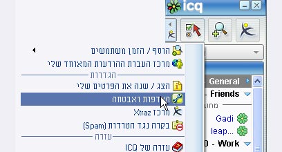 2. לחצו על כפתור התפריט המרכזי ב-ICQ (הלחצן השמאלי למעלה), ובחרו באפשרות "העדפות ואבטחה".
