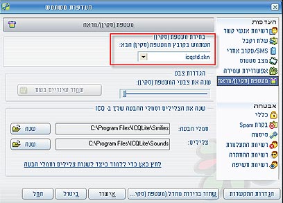3. בתוך החלון שנפתח, בחרו בכרטיסיה מעטפת (סקין/מראה), תחת הנושא "העדפות". שם, תחת "שנה את הצלילים וסמלי ההעבעה שלך ב-ICQ, בחרו באפשרות "שנה", משמאל לשורה "צלילים". כעת תשנו את תיקיית ברירת המחדל לתיקיה בה שמרתם את הצלילים החדשים. אם תרצו לחזור לצלילים הרגילים, תוכלו לעשות זאת במסך הזה.