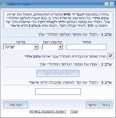 2. בפעם הראשונה יפתח חלון בו תצטרכו להזין מספר טלפון, לקבל קוד אישור ב-SMS למכשיר הנייד ולאמת אותו.