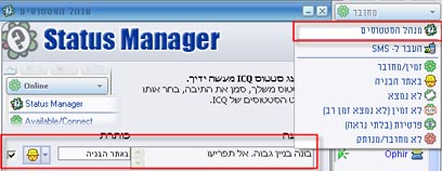 אתם ישנים, עובדים, מתקלחים, גולשים בים או סתם עסוקים במשהו אחר ורוצים שהחברים ידעו למה אתם לא עונים? אפשר להפוך את מצב החיבור למותאם אישית. הקליקו על "מחובר" ובחרו ב-"מנהל הסטטוסים". לחצו על הריבוע ובחרו אייקון מתאים, סמנו את הקוביה, ומלאו את השדות במה שבא לכם (אפשר גם בעברית).
