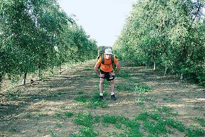 אחרי זה הלכנו. ואז הלכנו עוד קצת, ואז הלכנו עוד המון. הלכנו דרך המטעים של חולדה והמטעים של עוד כמה מקומות ואז דרך עוד קצת מטעים, והגענו לגדר לפני יער בקוע. מאחוריה בקע בדואי שאמר לנו שאנחנו לא יכולים לעבור כי הכלבים שלו יאכלו אותנו, וחוץ מזה יש גדר. שאלנו אותו אם אפשר ללכת מסביב; הוא ענה שהוא לא יודע איפה נגמרת הגדר. הלכנו שישה צעדים במורד הדרך, והגדר נגמרה. הסתכלנו עליו והמשכנו לצעוד. אגב, שאלתי, ולא: הוא לא מכיר את מונטי פייתון.