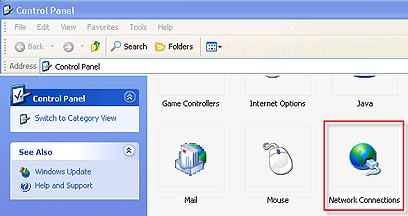 - גשו לתפריט "התחל" + "לוח בקרה" + "חיבורי רשת". על המסך אמור להופיע סמל של שני מסכים סמוכים זה לזה, שאיקס אדום מתנופף מימינם. שמו של החיבור הוא Local Area Connection, והמשימה שעומדת בפניכם היא להסיר את ה-X.