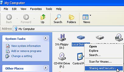 - כדי לעשות זאת יש ללחוץ בקליק ימני על התיקייה או הכונן המבוקש ולבחור ב"מאפיינים" או ב"שיתוף ואבטחה". אם בחרתם "מאפיינים" – גשו ללשונית "שיתוף"; אם בחרתם ב"שיתוף ואבטחה", עשויה להופיע הודעת אזהרה. יש לאשר את קבלת האזהרה וממשיכים: סמנו V ב"שתף תיקייה זו ברשת" והעניקו לה שם.