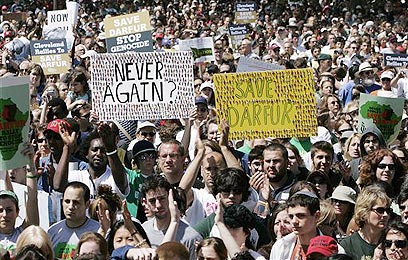 בעוד מנהיגי ממשלת סודן ותנועות המורדים לא מצליחים להגיע להסכמה על עתיד חבל דרפור, אלפי אמריקנים התאספו בוושינגטון להפגנת-ענק שמטרתה להוביל להתערבות אמריקנית בנעשה. עד כה נהרגו מעל ל-200 אלף בני אדם כתוצאה מהטבח בחבל, מעל ל-2 מיליון נאלצו להימלט מבתיהם במה שנחשב לאסון ההומינטרי הגדול ביותר בשנים האחרונות. ככה זה נראה