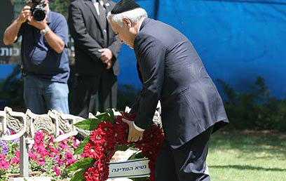 הנשיא קצב מניח זר. צילום: דודי ועקנין