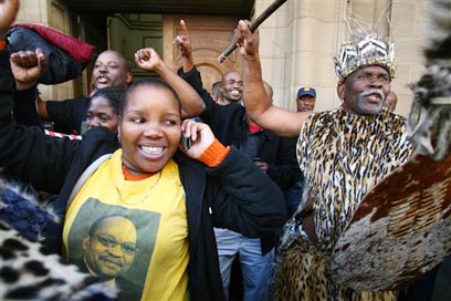 תומכיו של זומה חוגגים למשמע הזיכוי (צילום: איי.פי)