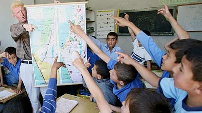 תלמידים בחברון לומדים על מפת הארץ (צילום: רויטרס)