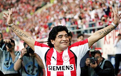 מראדונה חוגג את הדאבל של אולימפיאקוס (צילום: איי פי)