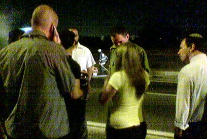 עומדים ולא מאמינים. זירת התאונה ליד מחלף יבנה (צילום: גילי צמח)