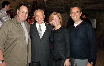 דן אקרויד (משמאל), שמעון פרס, הת'ר ריסמן וג'רי שוורץ במערת צידקיהו (צילום: סטפן אפשטיין)