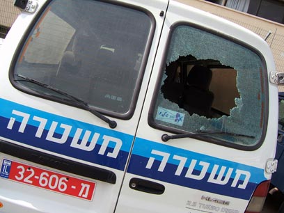 חלון מנופץ, שוטרים מותקפים (צילום: באדיבות משטרת מחוז ש"י)