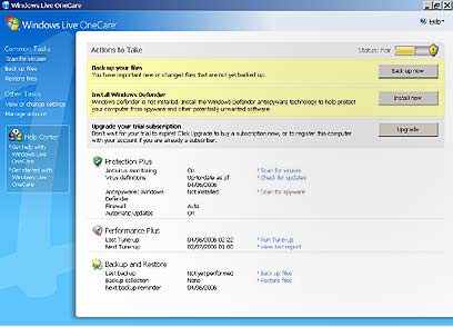 בכלל, התוכן של איזור ה"Actions To Take" במסך המרכזי של OneCare, מרגיש יותר מדי כמו קידום מכירות למוצרי מיקרוסופט. הוא מזכיר לכם לא רק לבדוק, לעדכן ולגבות, אלא גם להתקין את Windows Defender ולשלם על הגירסה המלאה של OneCare - משהו שאנחנו, לפחות בגירסה הנוכחית, לא נמהר לעשות.