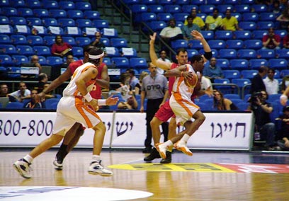 ג'נקינס מול גילכריסט בהיכל נוקיה. זריקת עונשין מכריעה (צילום: יועד כהן)