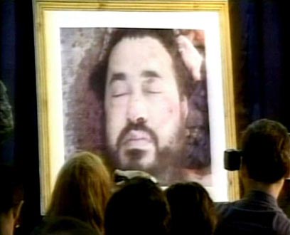 תמונת גופתו של א-זרקאווי כפי שהוצגה בבגדד (צילום: רויטרס)