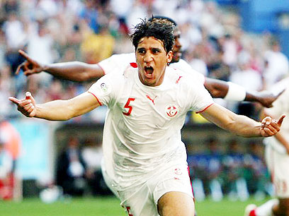 זיאד ג'זירי חוגג את שער היתרון של טוניסיה, הערב (צילום: איי פי)