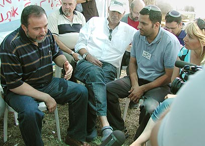 ליברמן עם השובתים וראש העיר בשדרות (צילום: אירנה אטינגר)