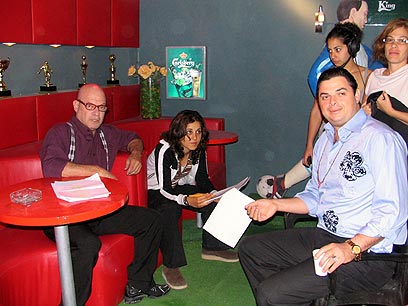 אבל לפני כן הם משמשים תפאורה על הסט ואני הייתי תפאורה עם מלים. נערת התסריט החמודה הרגיעה אותי שגם גדולי השחקנים, כלומר אלון מזרחי, שוכחים לפעמים את הטקסט.