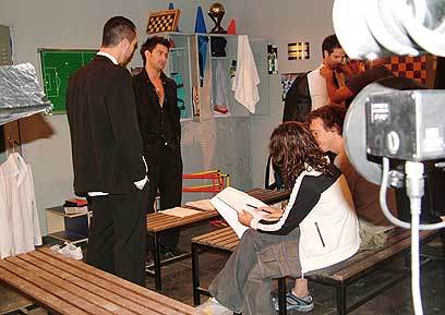 אחרי סיום צילום הסצנה, מתחילים לעשות חזרה על הסצנה הבאה שמתרחשת אף היא בחדר ההלבשה ושי שוב מכנס את כולם לחזרה, מעיר הערות ומקשיב להצעות השחקנים. שוב מתחילים לצלם וחוזר חלילה עד שהכל יוצא מושלם.