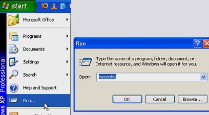 - כלי שמובנה במערכת ההפעלה של Windows מאפשר לערוך את רשימת ההפעלות הזאת, ולבטל את טעינתן של התוכנות המיותרות. לחצו על כפתור Start (או 'התחל'), ואז בחרו ב-Run. בחלון שייפתח הקלידו msconfig.