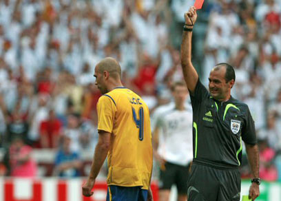 אם לא היו חסרות לשבדים צרות, הם קיבלו אחת נוספת בדקה ה-34. טדי לוצ'יץ' דחף בפראות את קלוזה, ראה את הצהוב השני והשאיר את נבחרתו בעשרה שחקנים.
