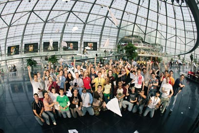 אתם יכולים לתאר לעצמכם מה חיכה לי: 150 עונדי פאוצ'ים מ-49 מדינות, שעל חלקם עוד אפשר לראות את סימני המכות מהתיכון, משחקים במטוסי נייר ומקבלים על זה פרסים. וגם אני קיבלתי פרס, כי טסתי לשם עם כתב של "מעריב לנוער", נציגות של רדבול וסגל נבחרת ישראל: אסף נויפלד, שהתחרה בקטגוריית מרחק ובא איתנו בזכות כדור נייר מקומט שהגיע ממש רחוק; דוקטור תומר בכר, שהתחרה בקטגוריית זמן והוא בהחלט אינו רופא; ושגיא ווליאנסקי, סטודנט לאווירונאוטיקה ולחלל מהטכניון, שנלחם בקטגוריית אווירובטיקה. לכולנו היה המון על מה לדבר.