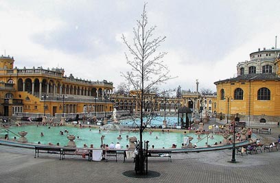 בריכת מים מינרליים במרכז בודפשט. ריפוי וטיפול