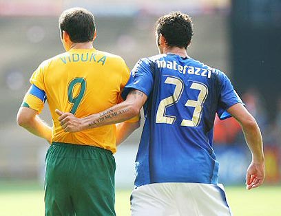 כמה אכזרי הוא הכדורגל, את זה גם חוס הידינק ושחקני אוסטרליה למדו על בשרם. שלוש דקות בתוך תוספת הזמן, כשכבר כל האיצטדיון בקייזרסלאוטרן התכונן להארכה, נפל פביו גרוסו ברחבה, אחרי גלישה של לוקאס ניל. השופט הספרדי, לואיס מדינה קנטאלחו, לקח את ההחלטה הקשה במשחק, אולי בטורניר כולו, ושרק לבעיטת עונשין מ-11 מטר. פרנצ'סקו טוטי לא נכשל וקבע את התוצאה הסופית - 0:1 לאיטליה, ה'סקוואדרה אזורה' ברבע הגמר.