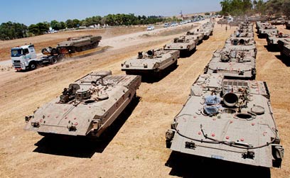 משוריינים של צה"ל עורכים לפעולה (צילום: אמיר כהן)