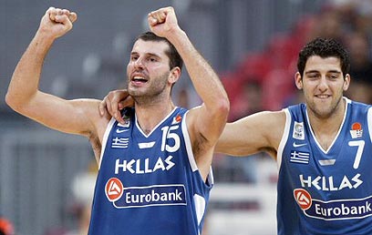 בורוסיס (מימין) במדי נבחרת יוון ביחד עם מיכאליס קאקיוזיס (רויטרס)