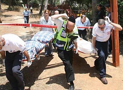 פינוי הגופות משטח הפארק, היום (צילום: חגי אהרון)