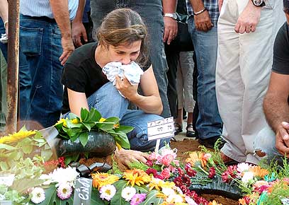 האם ריימונד מעל הקבר הפתוח (צילום: רענן בן-צור)