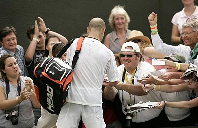המעריצים מסרבים להיפרדמ אגאסי, היום בווימבלדון (צילום: רויטרס)