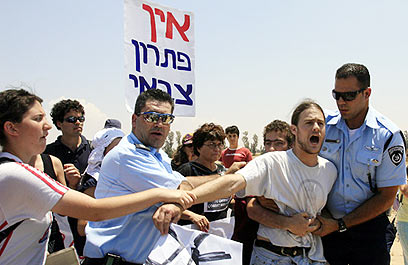 מפגינים באזור כרם שלום (צילום: צפריר אביוב)