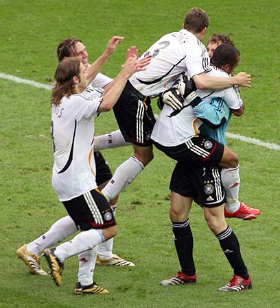 ויש גם מי ששמח. הגרמנים על להמאן, אחרי רבע הגמר (צילום: רויטרס)