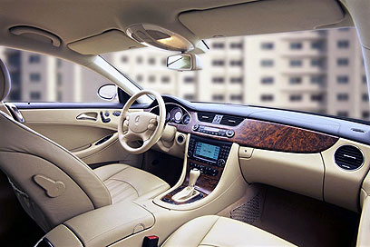 עבור מי שאינו מכיר את ה-CLS, תייצר כניסה לחלל הנוסעים חוויה מעורבת. הדימיון כאן ל-E גדול במיוחד, ומהווה ניגוד בולט לחיצוניות הזועקת. מעטים הרי יזהו כאן פתחי אוורור-צד שונים. בסך הכל מדובר בסביבת העבודה והמחייה של ה-E המחודשת, כולל מספר פרטים שלא מצאו מקומם עדיין ותחושה זולה מדי, פה ושם. מה כן שונה? תנוחת הנהיגה אחרת בגלל הגג הנמוך יותר, ומכסה המנוע המשתפל הרחק לפנים. אגב, ב-AMG אהבנו את ציפוי העור המיוחד של ההגה, ואת מתגי האלומיניום לתפעול תיבה ידני.
