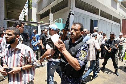 חמושים במקום הפיצוץ (צילום: רויטרס)